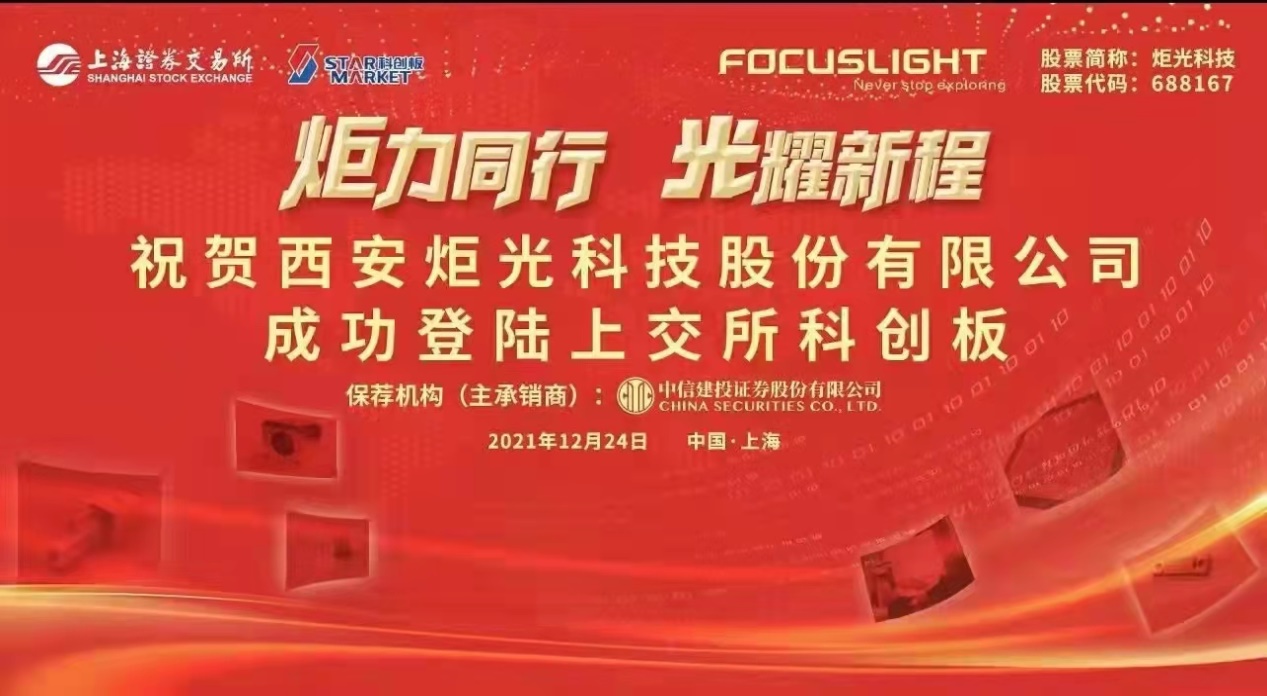 2021年12月24日,西安炬光科技股份有限公司(股票簡(jiǎn)稱(chēng):炬光科技,證券代碼為688167)在上海證券交易所科創(chuàng )板成功上市。發(fā)行價(jià)格78.69元/股,發(fā)行市盈率為362.33倍。