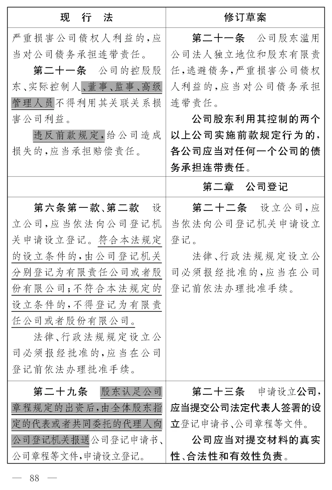 修訂草案共15章260條,在現行公司法13章218條的基礎上,實(shí)質(zhì)新增和修改70條左右。主要修改內容包括: