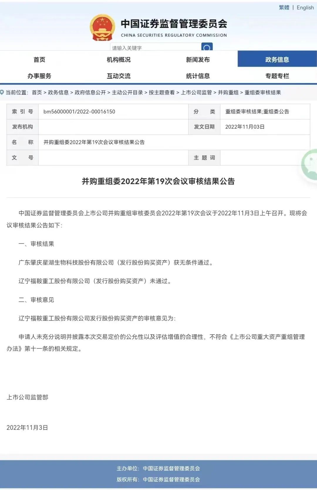 中國證券監督管理委員會(huì )(下稱(chēng)“中國證監會(huì )”)上市公司并購重組審核委員會(huì )2022年第19次會(huì )議于2022年11月3日上午召開(kāi)。在此次會(huì )議中,星湖科技發(fā)行股份及支付現金購買(mǎi)資產(chǎn)并募集配套資金暨關(guān)聯(lián)交易事項獲得中國證監會(huì )上市公司并購重組審核委員會(huì )審核“無(wú)條件通過(guò)”。